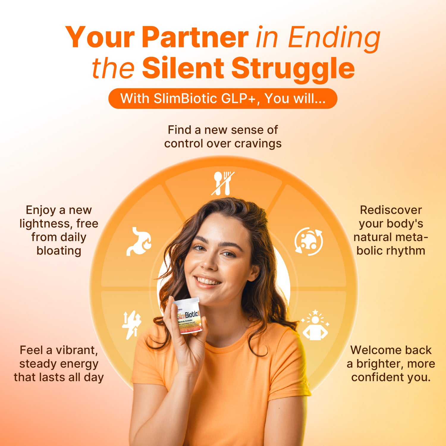 Powered by a science-backed Tri-Biotic™ blend, SlimBiotic GLP+ doesn't just manage weight, it works with you, helping to retune the core connection between your gut, metabolism, and cravings.